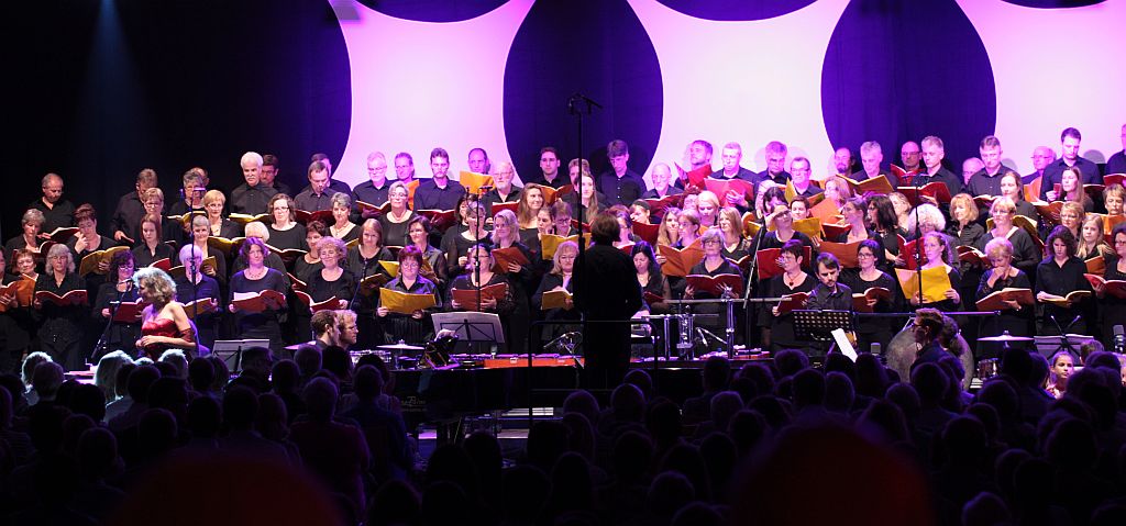 Mit dem wohl bekanntesten Stück der Kantate „O Fortuna“ - Schicksal, wie der Mond dort oben, so veränderlich bist Du – eröffneten die knapp 140 Projektchorstimmen unter der Leitung von Manuel Braun mit monumentaler Klanggewalt die von Carl Orff vertonten Auszüge der Lieder aus Benediktbeuren (lat. Carmina Burana). Die vom Schicksal umrahmten intonierten Themen zarte Freuden über den Frühling „Prima Vere , Uf dem Anger“, deftig derbe Klänge der Trinkgelage „In Taberna“ und wollüstige Koketterien im Liebeshof „Cour d'Amour“ mochten zunächst profan anmuten, die Herausforderung des Werkes voller rasanter Tempi in lateinischer und mittelhochdeutscher Sprache in zum Teil atemberaubenden Tonhöhen meisterten die Mitwirkenden jedoch mit Bravour. Präzise und dynamisch, von vier bis achtstimmig präsentierte der Chor ein Feuerwerk für das Gehör.